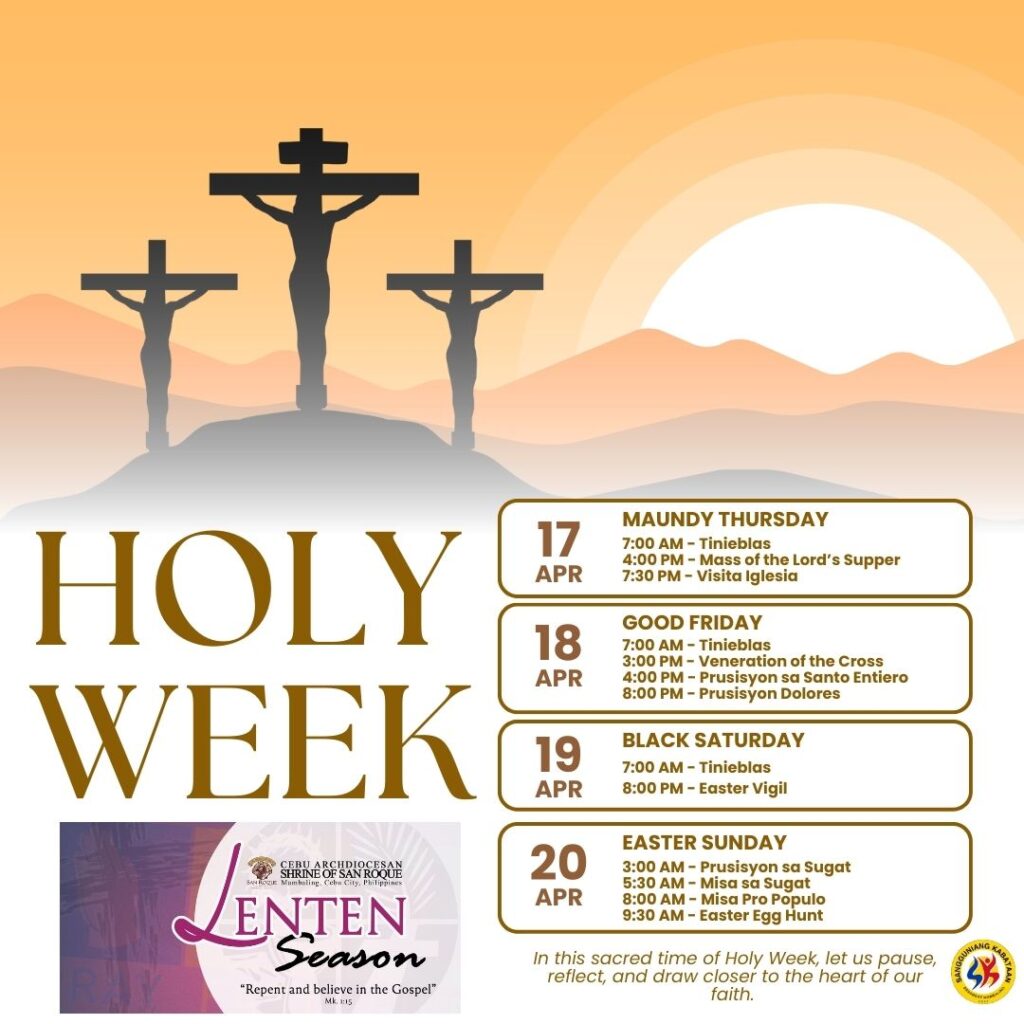 Please be guided, Mambalinganon, on the schedule of activities for this Semana Santa at the Archdiocesan Shrine of San Roque, Mambaling, Cebu City.