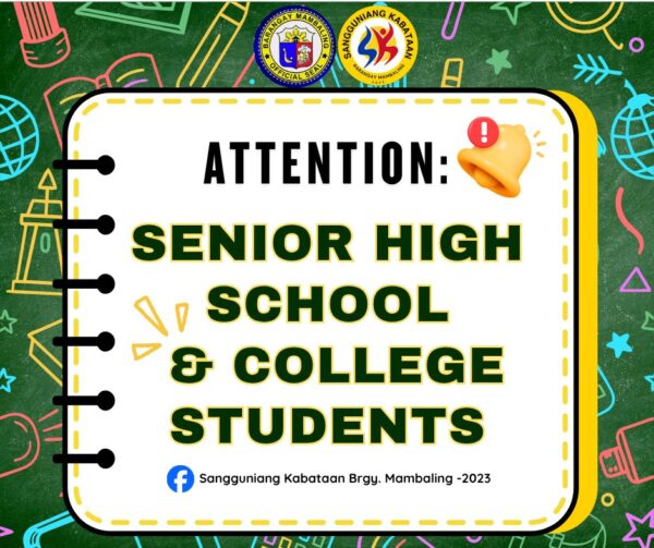 The Sangguniang Kabataan of Barangay Mambaling is conducting a data gathering initiative for all Mambalinganon students (public and private schools,