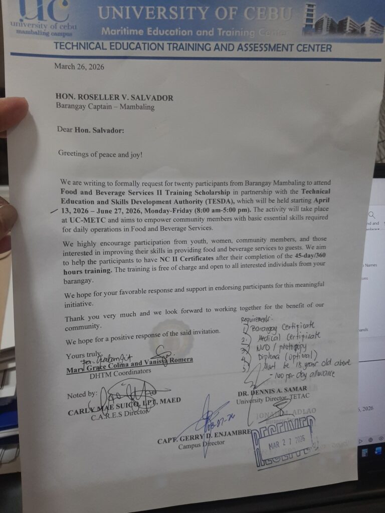 Mambalinganon! Kung ganahan mo moskwela sa TESDA, naa tay 45-day training program nga gi-offer sa UC. Nagkinahanglan mi ug 20