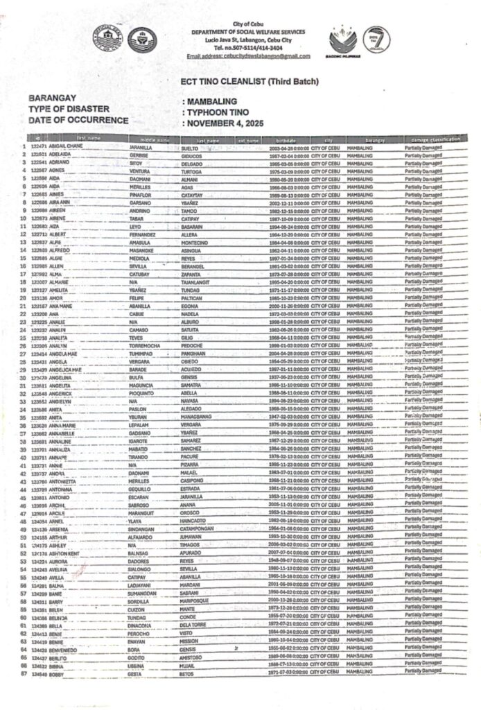 📣 Mga Mambalinganon! Ania na ang inyong gipaabot nga ayuda para sa Bagyong Tino (Partially Damaged). 📌 Mga Benepisyaryo: Tan-awa
